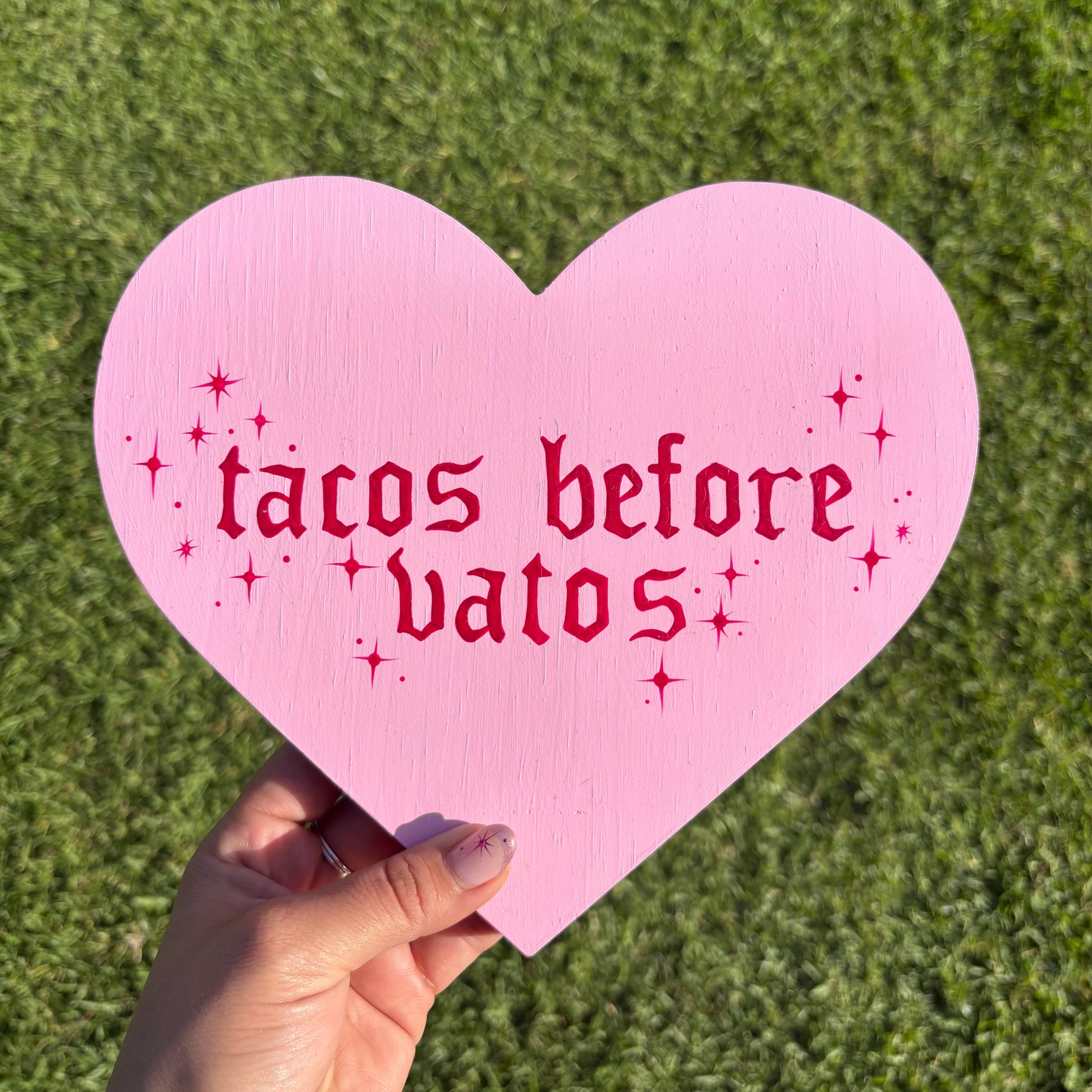 Hand painted acrylic on wood.